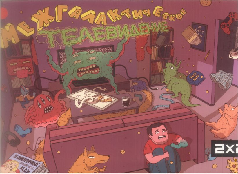 Телевидение — штука безграничная. Например, в этом сборнике вы найдёте четырнадцать коротких комиксов в самых разных стилях, которые объединяет лишь общая тема — Межгалактическое телевидение. Безумные инопланетяне, космические кризис-менеджеры, кони-бойцы, лунные школьники и другие классные типы родились благодаря фантазии четырнадцати самых перспективных российских художников комиксов и собрались вместе по инициативе телеканала 2×2