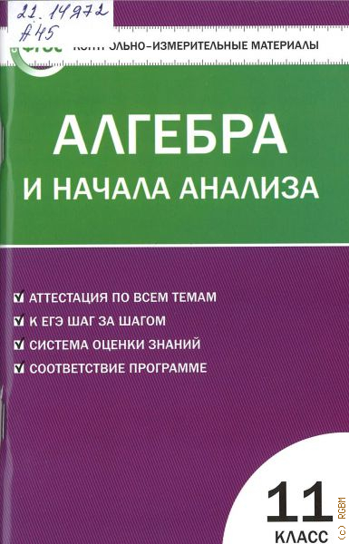 В пособии представлены контрольно-измерительные материалы (КИМы) по алгебре и началам анализа для 11 класса: тесты в формате заданий ЕГЭ, а также самостоятельные и контрольные работы по всем изучаемым темам. Ко всем заданиям приведены ответы. Предлагаемый материал позволяет проводить проверку знаний, используя различные формы контроля. Издание ориентировано на учителей, школьников и их родителей.