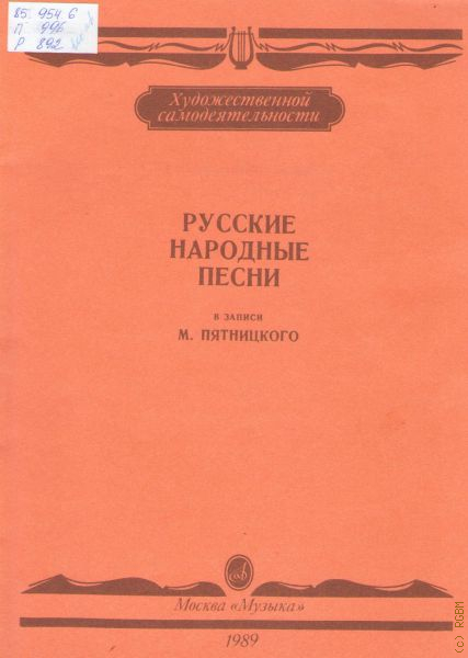 Русские народные песни в записи М. Пятницкого: без сопровождения и в сопровождении баяна. сост. А. Широков