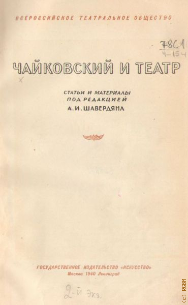 Чайковский и театр: статьи и материалы. редактор А. И. Шавердян