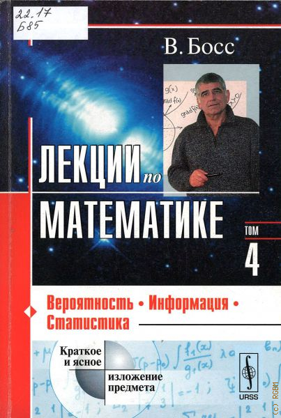 В настоящем томе лекций помимо классических разделов теории вероятностей освещается ряд новых направлений, в частности нелинейный закон больших чисел и асимптотическое агрегирование. Изложение сопровождается большим количеством примеров и парадоксов, способствующих рельефному восприятию материала. Затрагиваются многие прикладные области: управление запасами, биржевые игры, массовое обслуживание, страховое дело, стохастическая аппроксимация, обработка статистики. Достаточно полно излагается теория информации с ответвлениями «энтропийно термодинамического» характера. Книга отличается краткостью и прозрачностью изложения. Объяснения даются «человеческим языком» --- лаконично и доходчиво, благодаря чему книга легко читается. Значительное внимание уделяется мотивации результатов. Охват тематики достаточно широкий, но изложение построено так, что можно ограничиться любым желаемым срезом содержания. Для студентов, преподавателей, инженеров и научных работников.