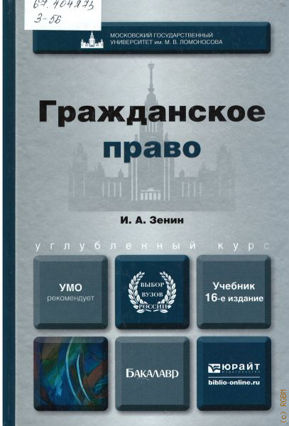Изложены основные положения учебного курса Гражданское право, включая новейшее право интеллектуальной собственности. Особенностью учебника является практическая направленность учебного материала, что должно помочь будущим юристам в их профессиональной деятельности. Содержание и структура учебника соответствуют требованиям Государственного образовательного стандарта высшего профессионального образования. Для студентов, обучающихся по специальностям 21 100 (30 501) Юриспруденция, 32 700 (50 402) Юриспруденция (учитель права), 30 505 (23 100) Правоохранительная деятельность, 30 500 (521 400)Юриспруденция (бакалавр).15-е издание, переработанное и дополненное.