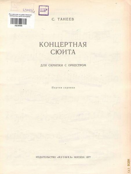 Танеев Сергей Иванович Концертная сюита: соч. 28: для скрипки и оркестра. Переложение для скрипки с фортепиано. редакция партии скрипки Д. Ойстрах