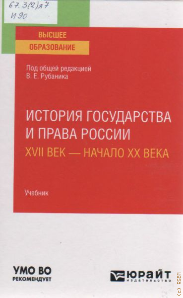 История государства и права России. XVII -начало XX века