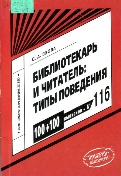 Оптимизация библиотечно — информационного обслуживания в значительной степени обусловлена типами поведения библиотекаря и читателя в процессе их общения. В книге С. А. Езовой раскрыто всё многообразие таких типов в ракурсе этико — психологических признаков толерантности, интеллигентности, разнообразных факторов: личностных, ситуационных и других. Рассмотрены компоненты культуры общения. Пособие ориентирует библиотекаря на осмысление своего типа поведения, как в профессиональной сфере, так и в межличностном общении. Оно представляет несомненный интерес для библиотекарей — практиков, студентов и преподавателей высших и средних специальных учебных заведений, для всех, интересующихся проблемами психологии общения.