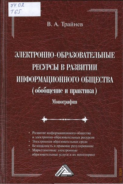 В монографии проанализирована важная роль электронных образовательных ресурсов (ЭОР) в развивающемся информационном обществе России. Перечислены условия, при которых этот процесс можно было бы значительно ускорить. Автор приводит многочисленные примеры эффективного использования АЭР в интеллектуальной среде обучения. Описана в порядке обобщения определенная работа Московского авиационного института (национального исследовательского университета) по созданию, внедрению и многочисленному использованию опыта этого вуза в виде образовательных электронных систем в цепочке «школа — вуз — наука — производство», а также других вузов в области электронного образования и информационных технологий разного уровня и конфигураций. Для преподавателей и студентов вузов, а также специалистов в области ЭОР.