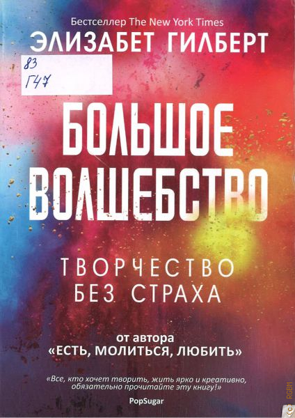 Книга для тех, кто хочет сделать свою жизнь насыщенной, грандиозной, счастливой, разнообразной и интересной. Элизабет Гилберт — популярная американская писательница, автор всемирно известной книги «Есть, молиться, любить», продержавшейся 199 недель в списке бестселлеров The New York Times. «Большое волшебство» — исследование на тему творчества: какова его природа, какую роль оно играет в нашей повседневной жизни, откуда берутся идеи, как преодолеть страх и начать творить. По мнению автора, внутри каждого из нас таятся необычные сокровища, которыми нас наградила природа. И наша задача — вытащить их на свет. А что для этого нужно сделать, объяснит эта практичная книга, полная ярких примеров и удивительных открытий. Вдохновляйтесь и не бойтесь творить!
