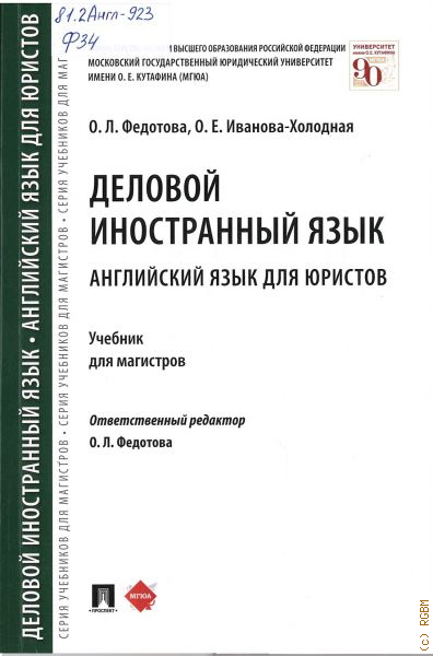 Настоящий учебник разработан на кафедре английского языка — 2 на основе федеральных государственных образовательных стандартов (ФГОС ВПО) третьего поколения и предназначен для обучения по направлению подготовки «Юриспруденция».