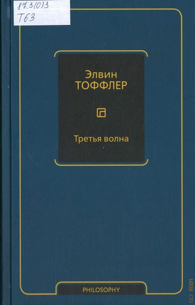 Элвин Тоффлер (1928−2016) — американский философ, социолог и футуролог, один из создателей концепции постиндустриального общества, автор революционных работ «Метаморфозы власти», «Шок будущего», «Революционное богатство», «Третья волна». В своем произведении «Третья волна» Э. Тоффлер выделяет три основных стадии развития человечества: аграрную, индустриальную, постиндустриальную. Волна у Тоффлера — это рывок в науке и технике, который приводит к глубинным сдвигам в жизни общества. Третья волна влечет за собой доминирование информационного общества. Сбылось ли пророчество Тоффлера или нет, сейчас каждый может убедиться сам.