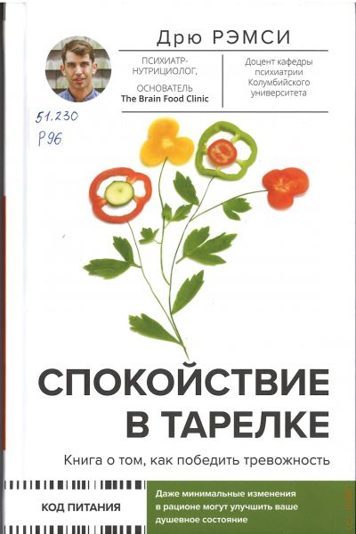 Дрю Рэмси — популярный психиатр-нутрициолог, который помогает людям с помощью питания улучшить свое психическое здоровье. Его книга «Спокойствие в тарелке. Книга о том, как победить тревожность» не про диету и ограничения. Эта книга о том, что еда — доступное лекарство от тревоги и признаков депрессии. Вы найдете много интересного: научный взгляд на еду и ее влияние на здоровье мозга и психики; информацию о нутриентах и продуктах-антидепрессантах, а также о приемах по комфортному изменению своего рациона; авторский б-недельный план питания, который можно подстроить под себя. С каждым приемом пищи у вас есть возможность перевести свой мозг в режим роста и тем самым улучшить свое психическое здоровье, поборов симптомы депрессии и тревоги, — главное, есть то, что нравится!