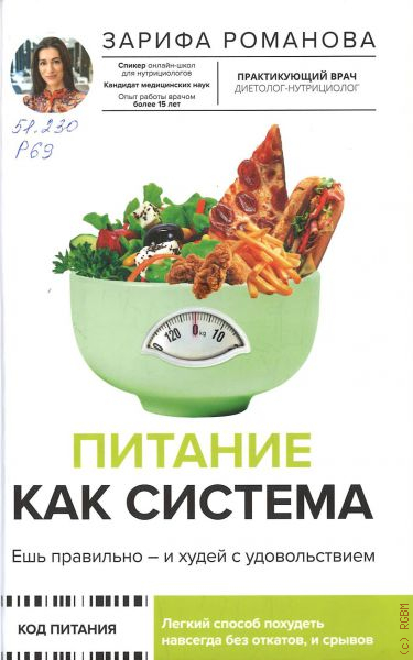 Зарифа Романова — практикующий врач-диетолог-нутрициолог, кандидат медицинских наук. Опыт работы врачом более 15 лет, спикер онлайн-школ для нутрициологов, соавтор «Книги долголетия». Ведет полезный блог doctorzarifaRus. Автор групповых и персональных программ похудения и правильного питания. Книга Зарифы Романовой «Питание как система: ешь правильно — и худей с удовольствием» — не очередное пособие про диеты, а революционный подход к здоровому образу жизни. Автор разрушает мифы о строгих ограничениях и предлагает индивидуальную систему питания, которая работает для каждого