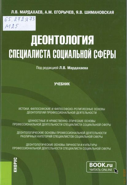 Учебник содержит материал, отвечающий требованиям современного уровня социального и социально-педагогического образования. Адресован студентам педагогических вузов и вузов, занимающихся подготовкой специалистов педагогического и психолого-педагогического направления, организации работы с молодежью, социальной работы; преподавателям, аспирантам и докторантам, изучающим вопросы, связанные с деонтологическими основами профессиональной деятельности; слушателям системы дополнительного педагогического, психолого-педагогического образования, организации работы с молодежью и социальной работы, а также управленческим кадрам социальной сферы. Соответствует ФГОС ВО последнего поколения. Для студентов бакалавриата и магистратуры, обучающихся по группе направлений «Образование и педагогические науки», «Социология и социальная работа».