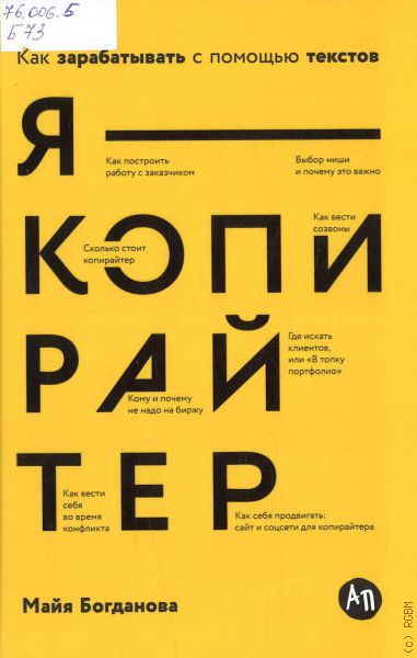 Если вы копирайтер или только хотите освоиться в профессии — эта книга для вас. Чтобы стать востребованным специалистом, к которому выстраивается очередь из заказчиков, недостаточно хорошо писать. Копирайтер умеет искать клиентов и находить с ними общий язык, быстро понимать задачу и ухватывать нужную тональность, выстраивать взаимоотношения так, чтобы заказчики оставались довольны работой и рекомендовали его своим друзьям и знакомым. А еще важно правильно организовать рабочий день, знать основы тайм-менеджмента, уметь работать с критикой и не сойти с ума от очередной правки