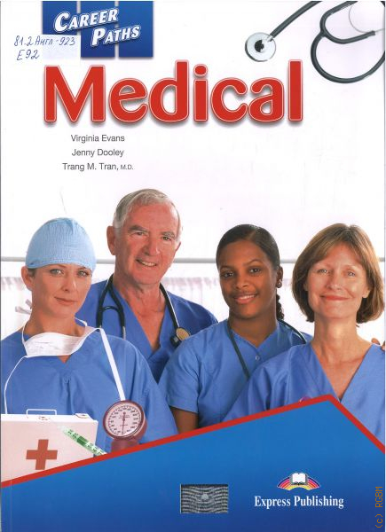 CAREER PATHS. Medical. Medical is a new educational resource for medical professionals who want to improve their Englisti communication in a work environment. Incorporating career-specific vocabulary and contexts, each unit offers step-by-step instruction that immerses students in the four key language components: reading, listening, speaking, and writing. Career Paths: Medical addresses topics including hospital employees, parts of the body, patient care, common illnesses, and career options. The senes is organized into three levels of difficulty and offers a minimum of 400 vocabulary terms and phrases. Every unit includes a test of reading comprehension, vocabulary, and listering skills, and leads students through written and oral production. Irncluded Features: A variety of reallistic reading passages. Career-specific dialogues. 45 reading and listening comprehension checks. Over 400 vocabulary terms and phrases. Guided speaking and witing exercises. Complete glossary of terms and phrases. The Teacher’s Guide contains detalled lesson plans, a full answer key and audioscripts. The audio CDs downloadable contain all recorded material. Express DigiBooks. The Digital version of the book contains subject specific videos, instant feedback on all tasks and progress monitoring reports. Express Publishing