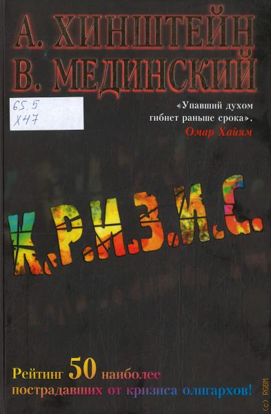 Мировой кризис — почти как третья мировая война: все им пугают, но никто его по-настоящему еще не прочувствовал. Но так ли страшен черт, как его малюют? Кризис — вполне естественное состояние для России. Их было великое множество — во все века, при всех правителях, — столько, что о большинстве мы уже давным-давно забыли. И зря. Потому что кризис — это всегда шанс. Вопрос лишь в том, что им надо уметь правильно воспользоваться. Сегодня — этот шанс у нас в руках. И от того, как мы распорядимся им, зависит судьба не только России, но и всего мира… Александр Хинштейн и Владимир Мединский знают о кризисе все, и своими знаниями они готовы поделиться с читателями