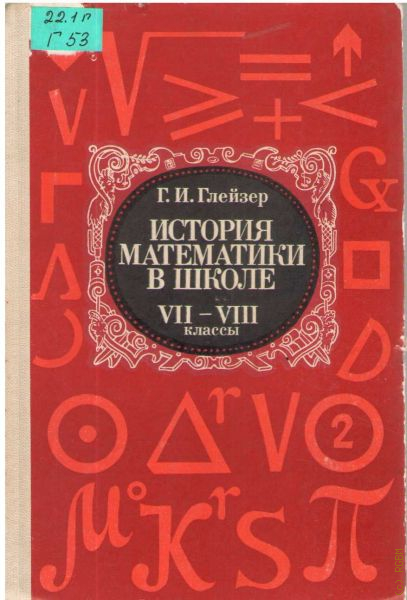 Глейзер Г. И., История математики в школе: VII-VIII кл.. Пособие для учителей — 1982