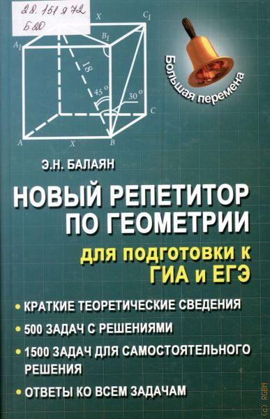 Балаян Э. Н., Новый репетитор по геометрии для подготовки к ГИА и ЕГЭ. краткие теоретические сведения и справочные материалы, 500 задач с решениями, 1500 задач для самостоятельного решения, ответы ко всем задачам — 2015 (Большая перемена)