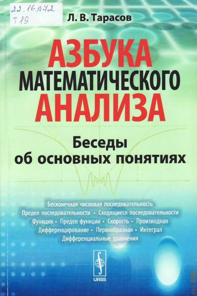 Тарасов Л. В., Азбука математического анализа. беседы об основных понятиях : бесконечная числовая последовательность, предел последовательности, сходящиеся последовательности, функция, предел функции, скорость, производная, дифференцирование, первообразная, интеграл, дифференциальные уравнения — 2010