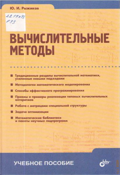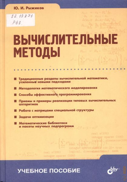Рыжиков Ю.И., Вычислительные методы. [традиционные разделы вычислительной математики, усиленные новыми подходами, методология математического моделирования, способы эффективного программирования, приемы и примеры реализации типовых вычислительных алгоритмов, работа с матрицами специальной структуры, задачи оптимизации, математические библиотеки и пакеты научных подпрограмм. учебное пособие для студентов, обучающихся по направлению 230100 "Информатика и вычислительная техника"] — 2007