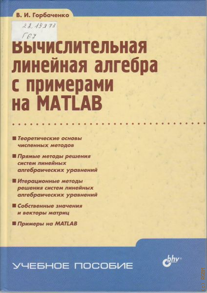 Горбаченко В. И., Вычислительная линейная алгебра с примерами на MATLAB. учебное пособие для студентов высших учебных заведений, обучающихся по специальности 080801 "Прикладная математика (по областям)" и другим экономическим специальностям — 2011 (Учебное пособие)