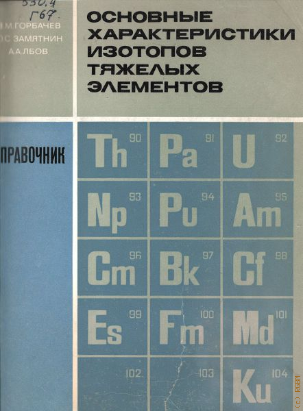 Горбачев В.М., Основные характеристики изотопов тяжелых элементов. Справочник — 1970