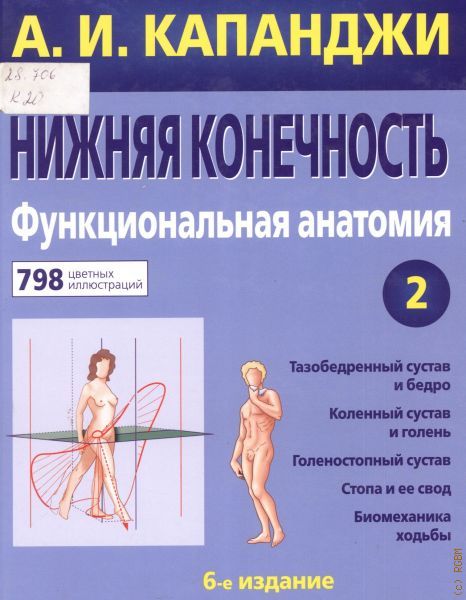Больше не надо представлять всемирно известного в кругах хирургов-ортопедов и кинезитерапевтов доктора Адальберта И.Капанджи. После длительной карьеры хирурга-ортопеда, впоследствии занимавшегося хирургией кисти, он полностью посвятил свое время переизданию и обновлению трех томов своего труда "Функциональная анатомия" (ранее работа называлась "Физиология суставов"). Второй том этой работы посвящен нижней конечности и проливает свет на такие сложные понятия, как гетерокинетический кардан лодыжек и костей задней части стопы, понятие лож голени. Книга включает также сводную схему факторов стабильности колена, таблицу нервов нижней конечности, новую главу, посвященную физиологии ходьбы. Как и в предыдущих изданиях, доктор Адальберт И.Капанджи самостоятельно подготовил и сделал цветными все схемы и рисунки, помогающие лучше понять биомеханику человека. К настоящему времен книга переведена на 11 языков.