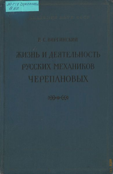 Виргинский В.С., Жизнь и деятельность русских механиков Черепановых — 1956