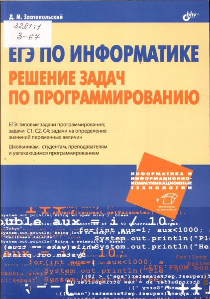 Златопольский Д. М., ЕГЭ по информатике. Решение задач по программированию. [ЕГЭ: типовые задачи программирования; задачи C1, C2, C4; задачи на определение значений переменных величин. школьникам, студентам, преподавателям и увлекающимся программированием] — 2013 (Информатика и информационно-коммуникационные технологии)