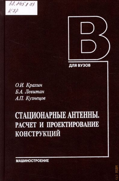 Крахин О. И., Стационарные антенны. Расчет и проектирование конструкций. учебник для студентов высших учебных заведений РФ, обучающихся по специальности 160400 "Проектирование, производство и эксплуатация ракет и ракетно-космических комплексов" направления 160000 "Авиационная и ракетно-космическая техника" — 2014 (Для вузов)