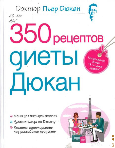 ![Дюкан П., 350 рецептов диеты Дюкан. [меню для четырех этапов, русские блюда по Дюкану, рецепты адаптированы под российские продукты] — 2012 (Диета доктора Дюкана)](/searchcat/covers/RGUB-BIBL-0000756040.jpg) |