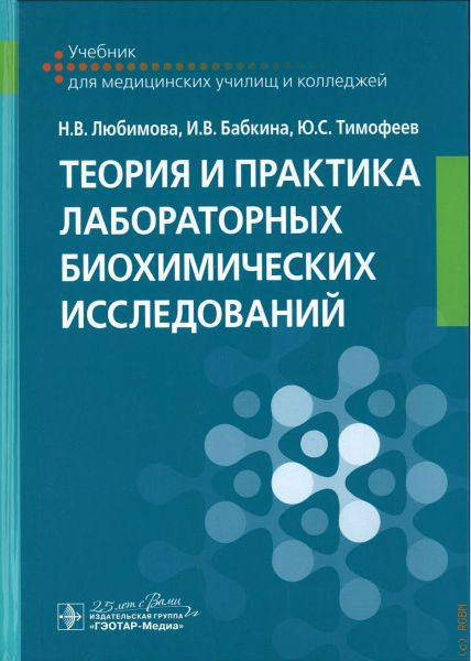 Любимова Н. В., Теория и практика лабораторных биохимических исследований. учебник для использования в образовательном процессе образовательных организаций, реализующих программы среднего профессионального образования по специальности 31.02.03 "Лабораторная диагностика" по ПМ.03 "Проведение лабораторых биохимических исследований" — 2020 (Учебник для медицинских училищ и колледжей)