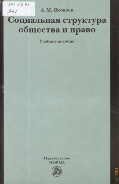 Яковлев А. М., Социальная структура общества и право. учебное пособие для студентов высших учебных заведений, обучающихся по направлению и специальности "Юриспруденция" — 2015