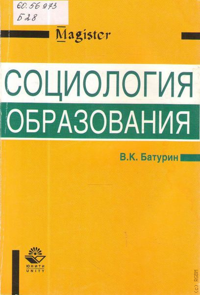 Батурин В. К., Социология образования. учебное пособие для студентов высших учебных заведений, обучающихся по направлению и специальности "Социальная работа", "Социология" — 2019 (Magister)