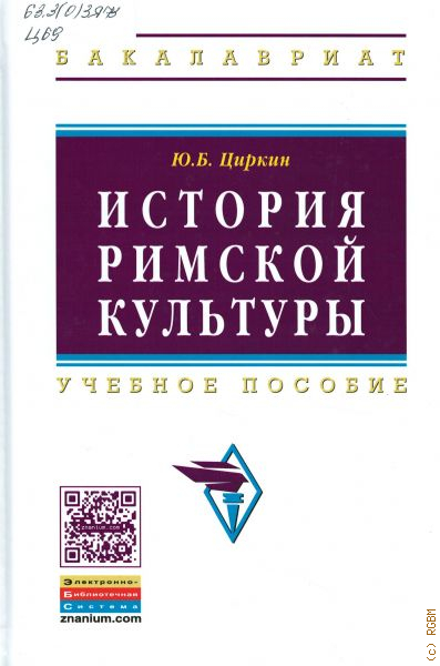 Циркин Ю. Б., История римской культуры. учебное пособие. для студентов вузов, обучающихся по направлениям подготовки 40.03.01 "История", 45.03.01 "Филология", 44.03.01 "Педагогическое образование" (квалификация (степень) "бакалавр") — 2017 (Высшее образование - Бакалавриат) (Бакалавриат)