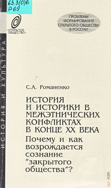 Романенко С.А., История и историки в межэтнических конфликтах в конце ХХ века. Почему и как возрождается сознание "закрытого общества" — 1997 (Проблемы формирования открытого общества в России. История и культура)