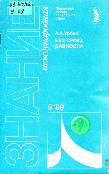 Урбан А.А., Без срока давности. О нацист.воен.преступниках и их покровителях — 1989 (Новое в жизни,науке,технике.Международная. 9/1989)