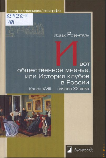 Розенталь И.С., И вот общественное мненье, или История клубов в России. конец XVIII - начало XX века — 2025 (История. География. Этнография. составитель Владислав Петров)
