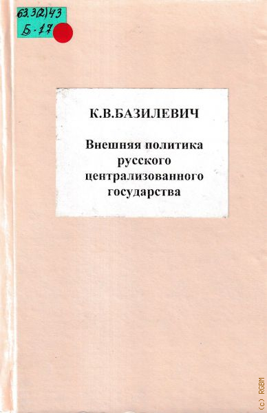 Вопросы внешней политики Русского централизованного государства XV - XVII вв. являются предметом систематической разработки советскими историками. За последние годы появился ряд книг, статей и публикаций, посвященных истории внешней политики России в XVI - XVII веках. ... Таким образом, в исследовании К. В. Базилевича внешняя политика России второй половины XV в. выступает как цельная последовательная система, подчинённая целям укрепления Русского централизованного государства и настойчиво проводившаяся в жизнь московским правительством.
