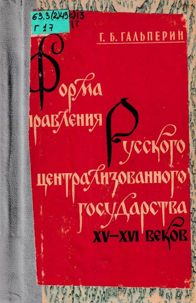 Гальперин Г.Б., Форма правления Русского централизованного государства XV-XVI вв. — 1964