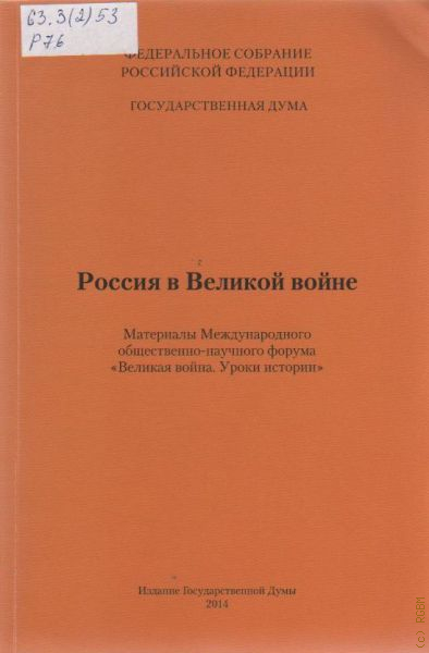 Россия в Великой войне: материалы Международного общественно-научного форума «Великая война. Уроки истории» — 2014