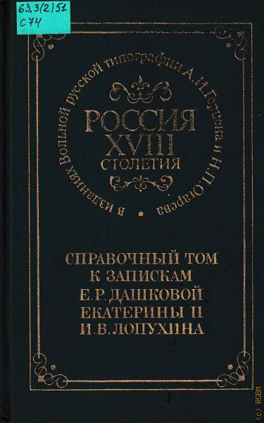 Справочный том к запискам Е.Р. Дашковой, Екатерины II, И.В. Лопухина. [Сборник] — 1992 (Россия XVIII столетия в изданиях Вольной русской типографии А.И. Герцена и Н.П. Огарева)