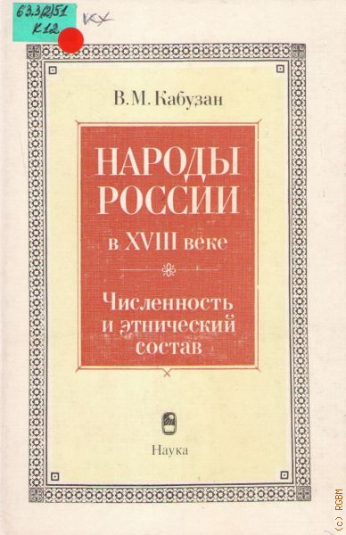 Кабузан В. М., Народы России в XVIII веке. Численность и этн. состав — 1990