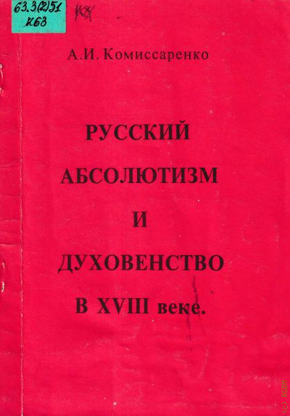 Комиссаренко А. И., Русский абсолютизм и духовенство в XVIII в.. (Очерки истории секуляризац. реформы 1764 г.) — 1990