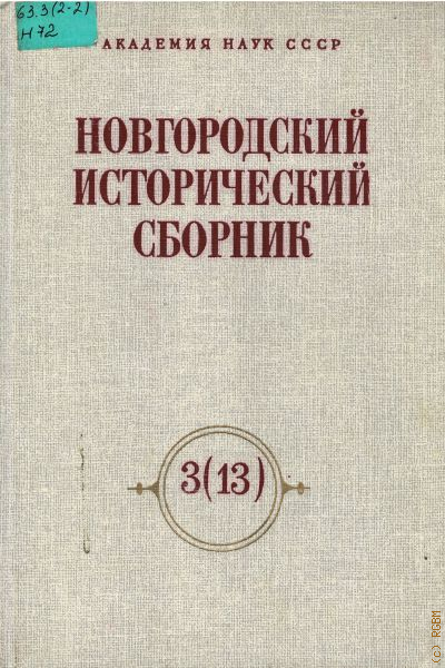 Новгородский исторический сборник. 3(13). Новгородский исторический сборник 3(13) — 1989