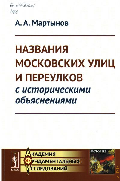Мартынов А. А., Названия московских улиц и переулков с историческими объяснениями — 2020 (Академия фундаментальных исследований (АФИ): История. Город: Архитектура, история, управление. — 16)