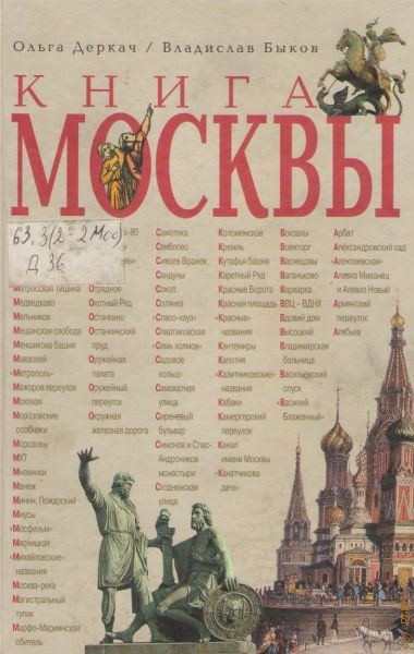 "Книга Москвы" - не путеводитель и не энциклопедия, хотя что-то энциклопедическое в ней, безусловно, есть. Но сухую истину справочника авторы щедро сдобрили своим собственным отношением к предмету, своими размышлениями и выводами, ненавязчивым юмором, и в результате получилась книга для легкого, но полезного чтения о Белокаменной и Первопрестольной. Улицы, памятники, дома, станции метро, именитые горожане представлены здесь в алфавитном порядке на широком историческом, географическом и литературном фоне. Ольга Деркач и Владислав Быков - семейный творческий союз. Журналисты и литераторы, ветераны интеллектуальных телепередач "Что? Где? Когда?", "Брейн-ринг", "Своя игра", а также авторы остроумной энциклопедии "Книга века" и биографии первого и последнего Президента СССР "Горбачев. Переписка переживших перестройку".
