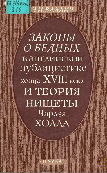 Валлич Э. И., Законы о бедных в английской публицистике конца XVIII в. и теория нищеты Чарлза Холла — 1990