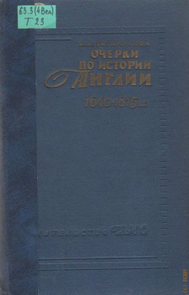 Татаринова К. Н., Очерки по истории Англии 1640-1815 гг. — 1958