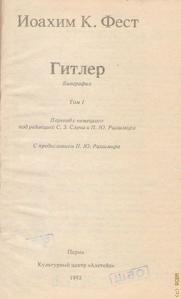Фест И.К., . Гитлер Т. 1 — 1993 (XX век. Фашизм)