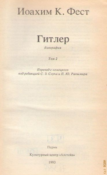 Фест И., . Гитлер Т. 2 — 1993 (XX век. Фашизм)